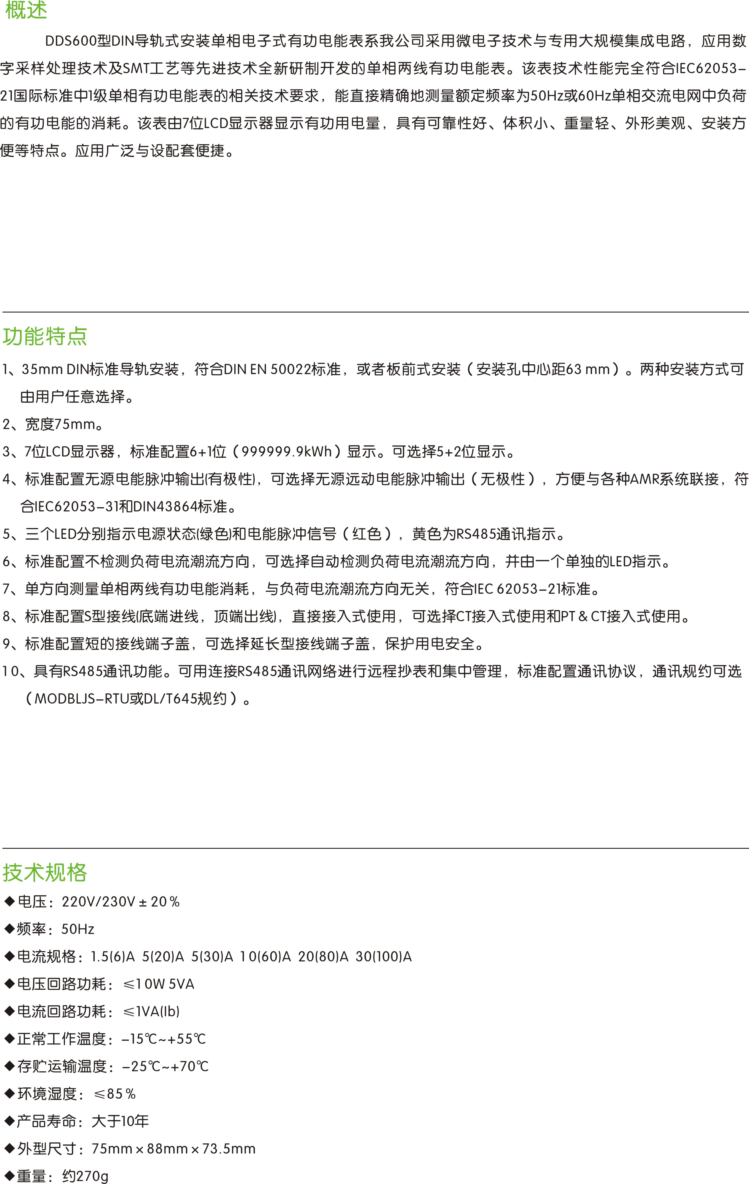 DDS600型單相導(dǎo)軌式電能表 (帶RS-485通信接口 4P